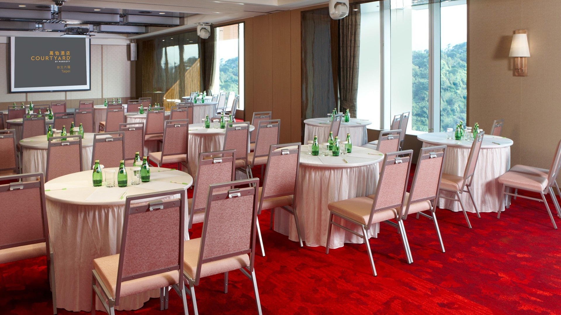 台北六福萬怡酒店提供 9 樓「山、海、林、水、晶、雲、風、光」共 8 個廳別以及 7 樓「超新星宴會廳」,通透開闊的會議空間與大面積落地玻璃,光線明亮、空間開闊,可劇院式、課堂式、U 字型、酒會式等不同座位排列,讓每場會議顯得輕鬆有朝氣,效率靈感更加倍!