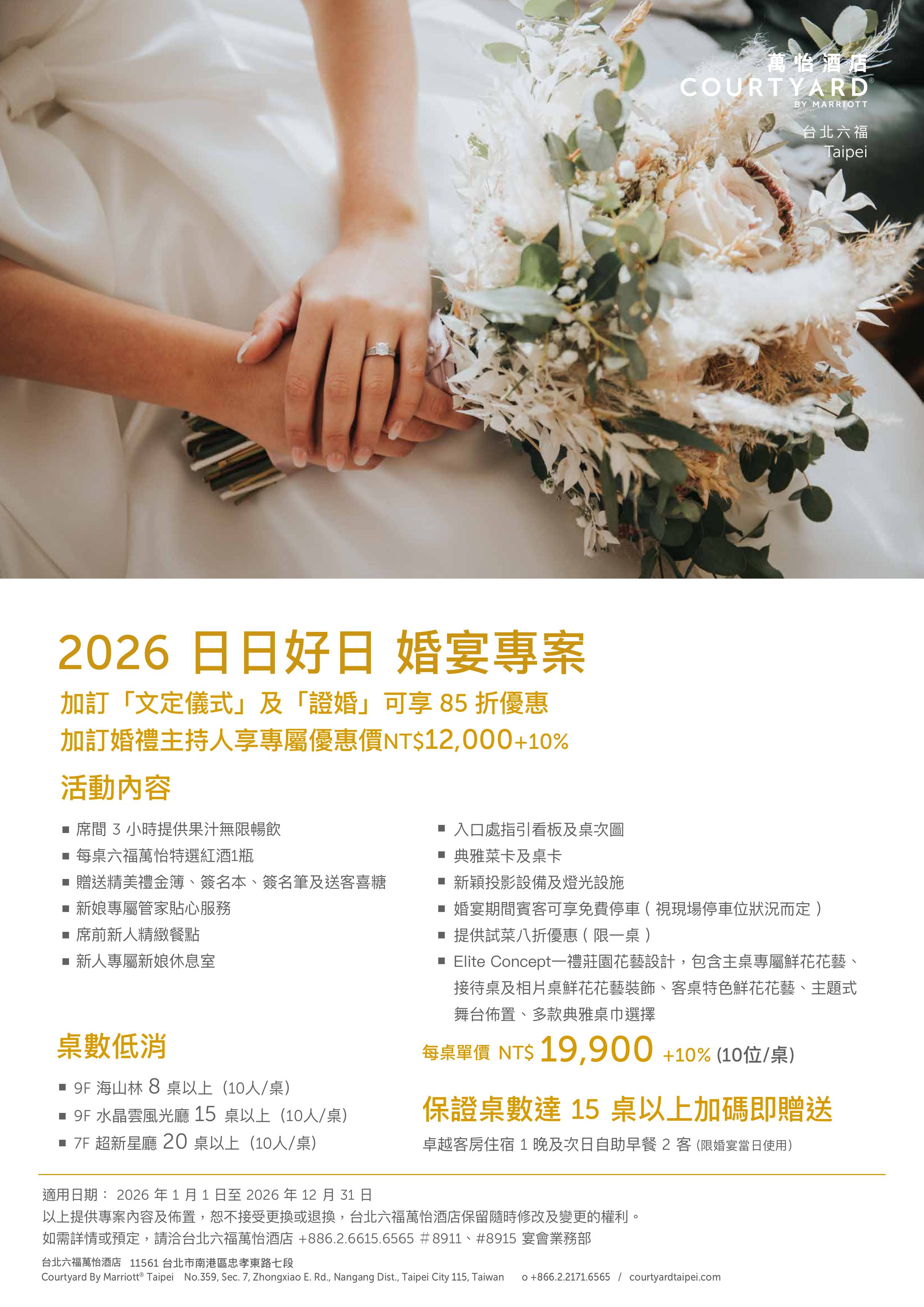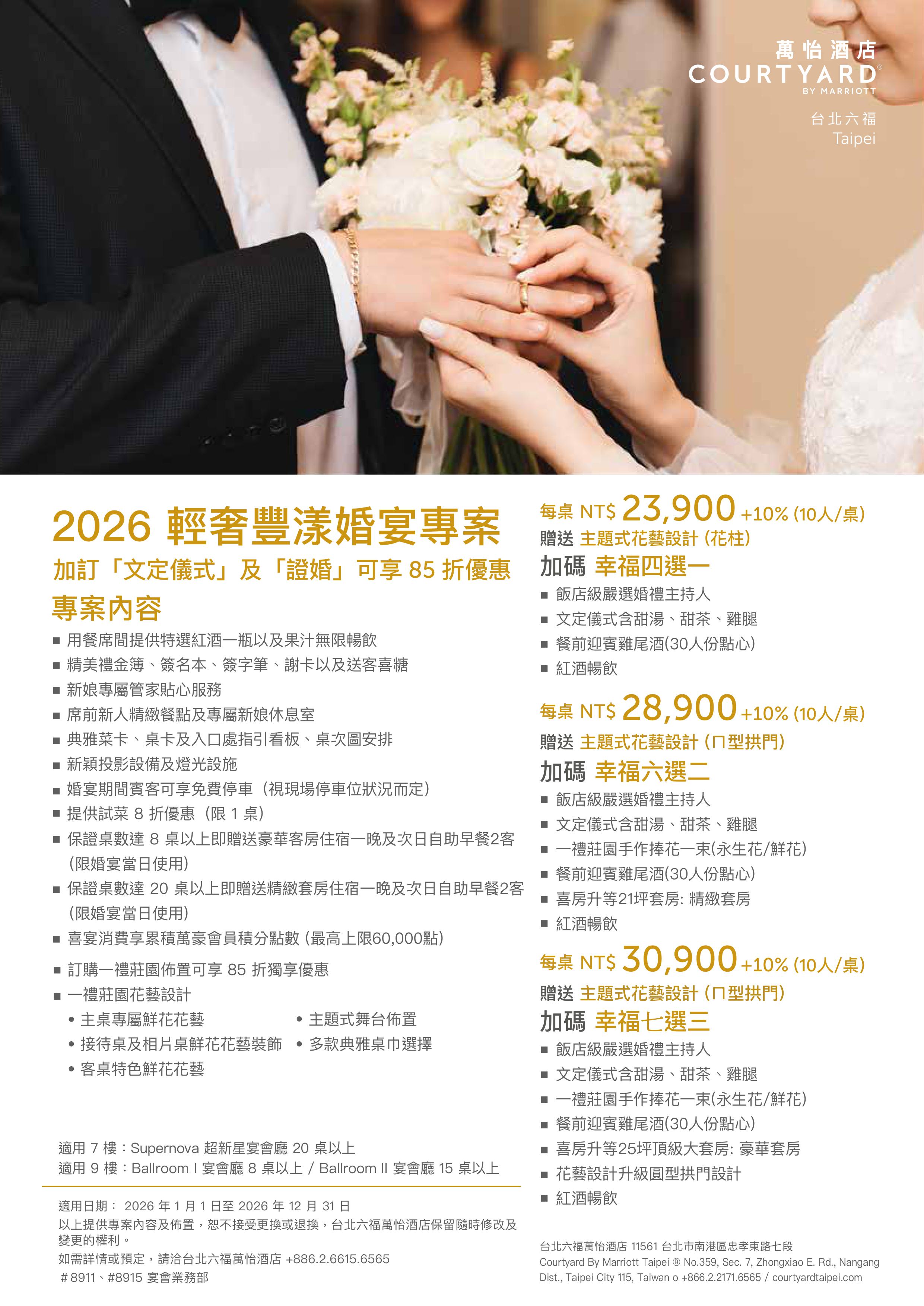 ■ 加訂「文定儀式」 或「證婚」可享 85 折優惠。