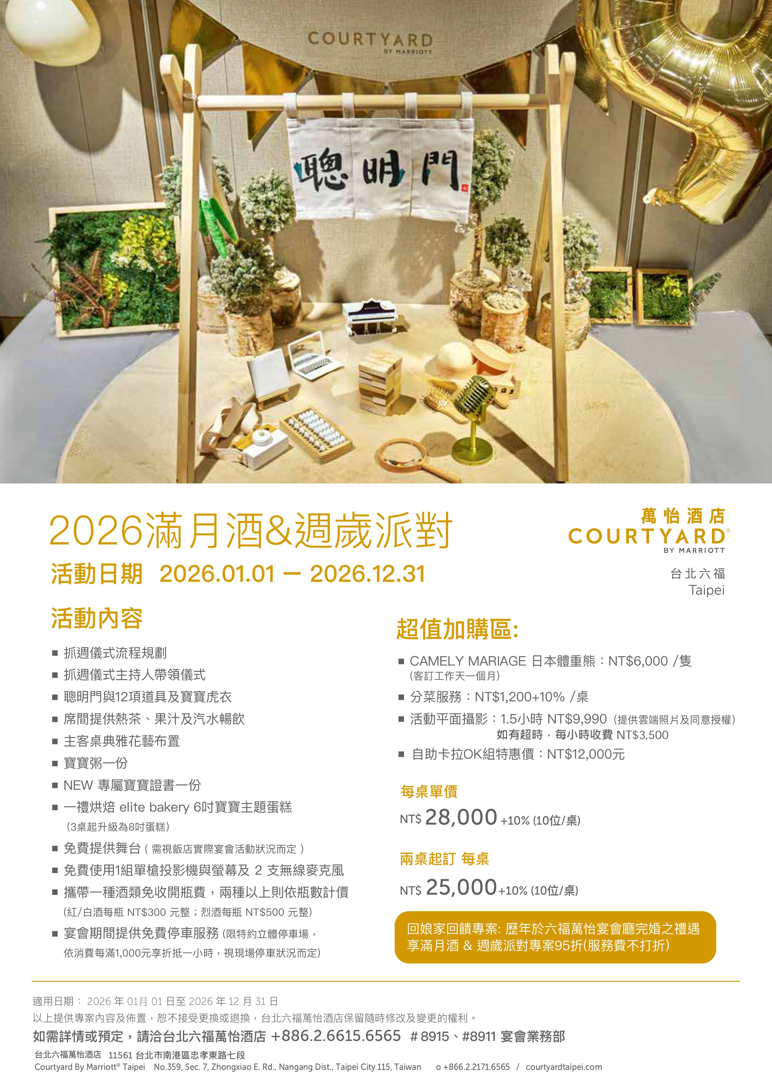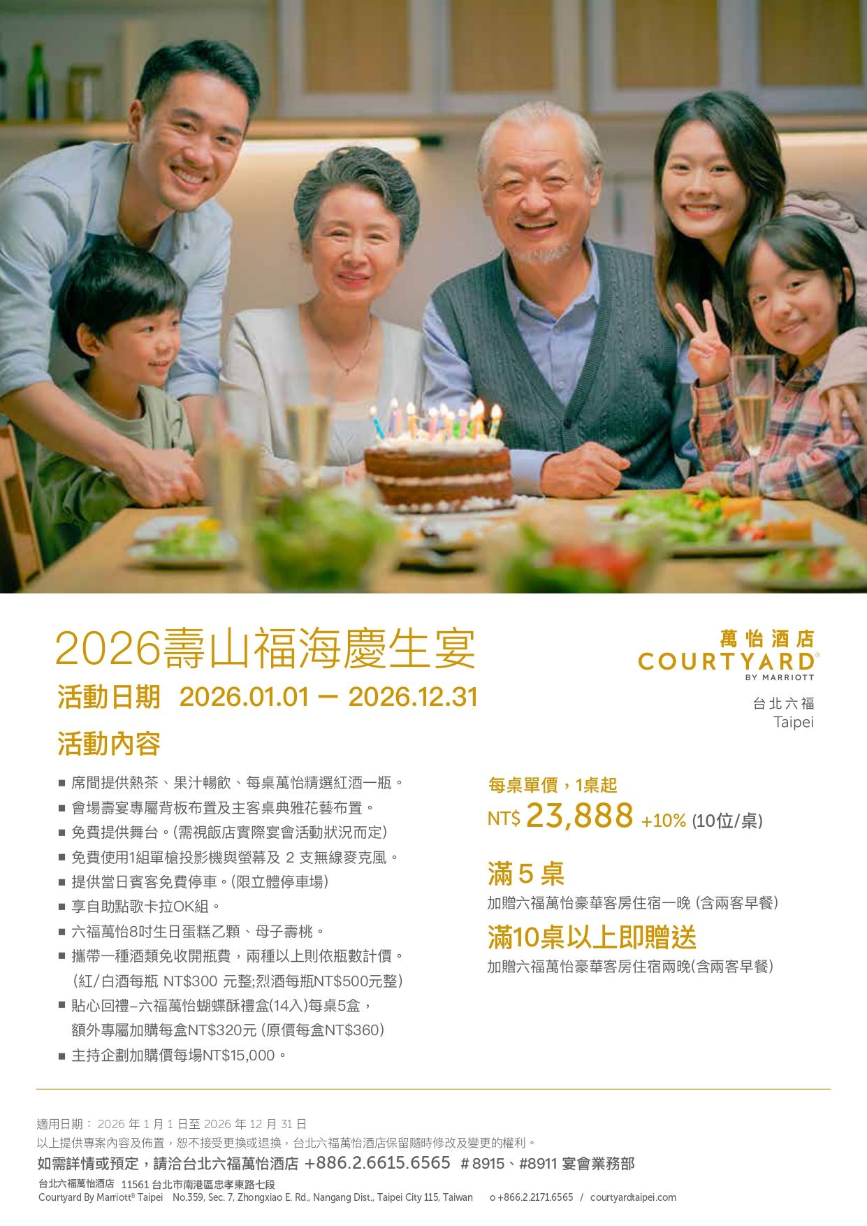 請撥打專線:02-6615-6565 宴會業務部 #8915 #8911