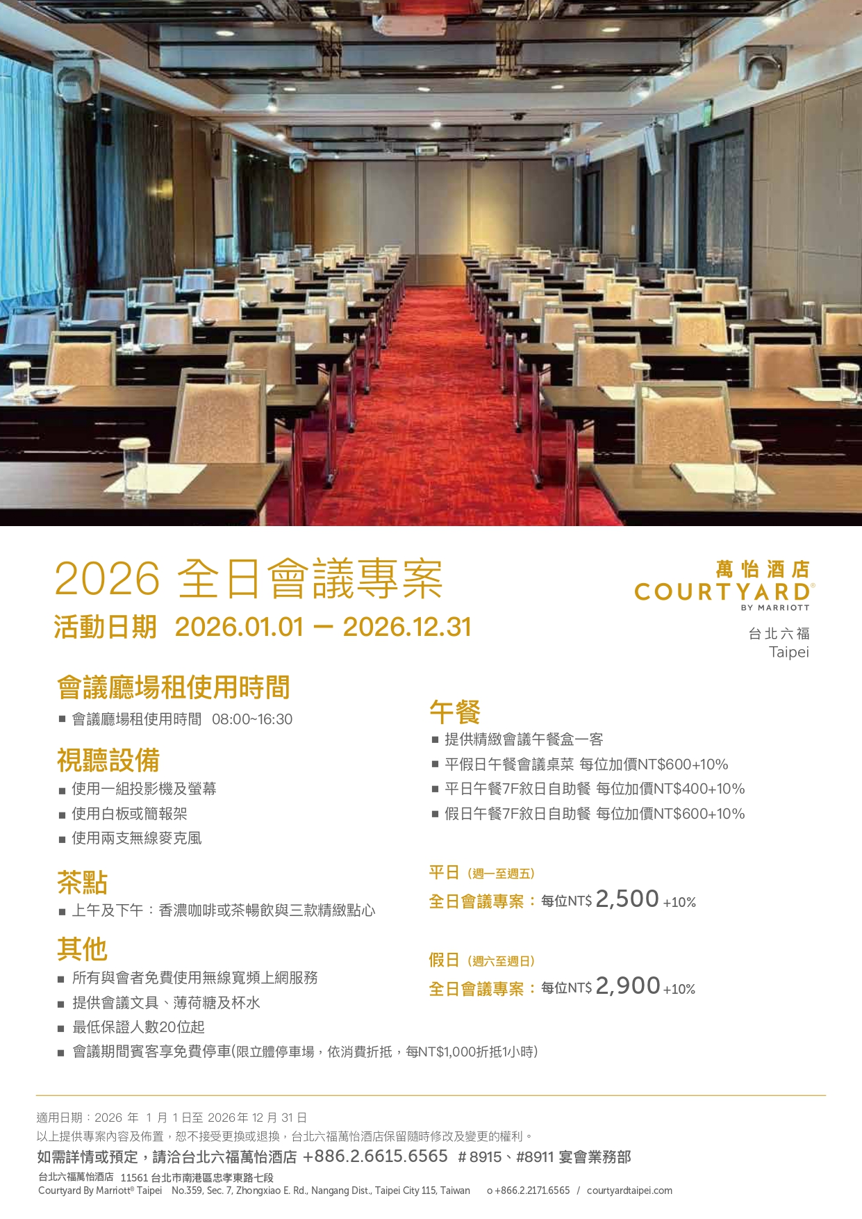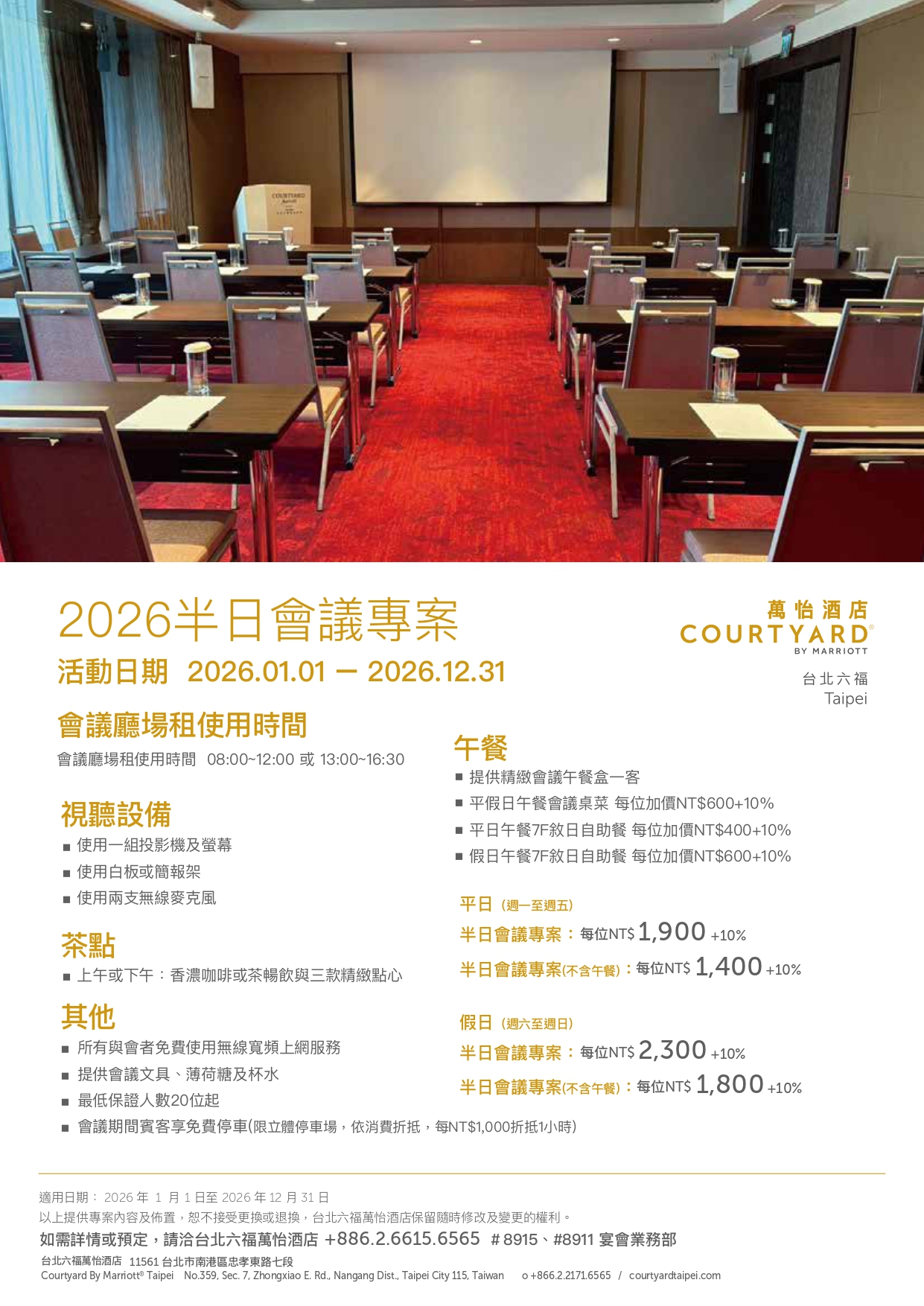 凡於台北六福萬怡酒店舉辦喜宴、壽宴、及會議之貴賓,享高鐵專屬優惠最高 6 折起!